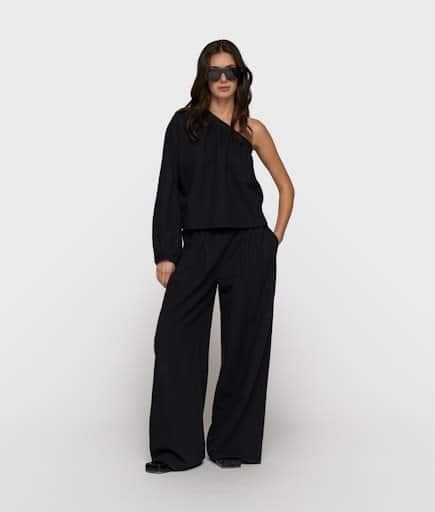 relaxed fit pants van 10 DAYS met wijde pijp, steekzakken, elastische band