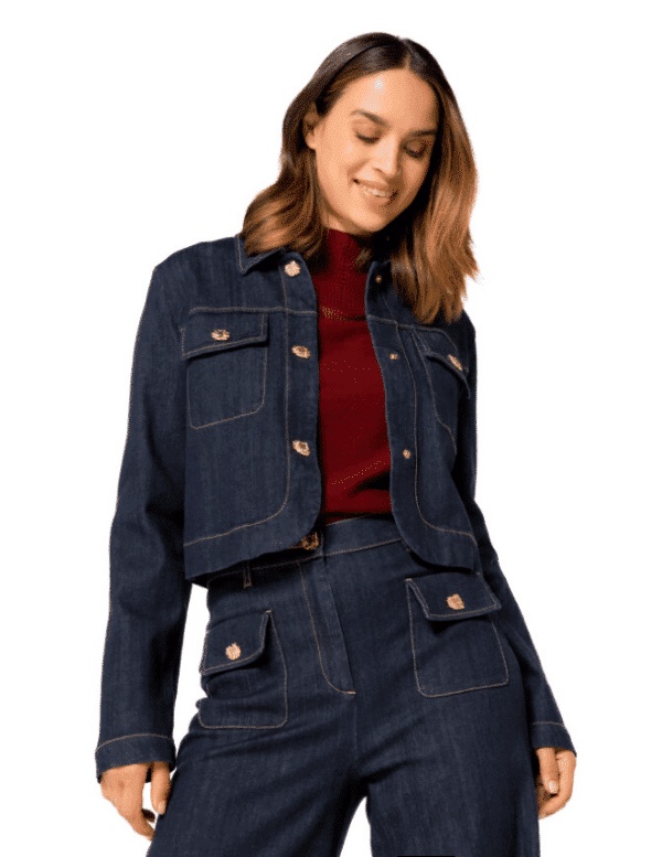 Jeans blouson van Caroline Biss met kraag, drukknoopsluiting middenvoor, borstzakken