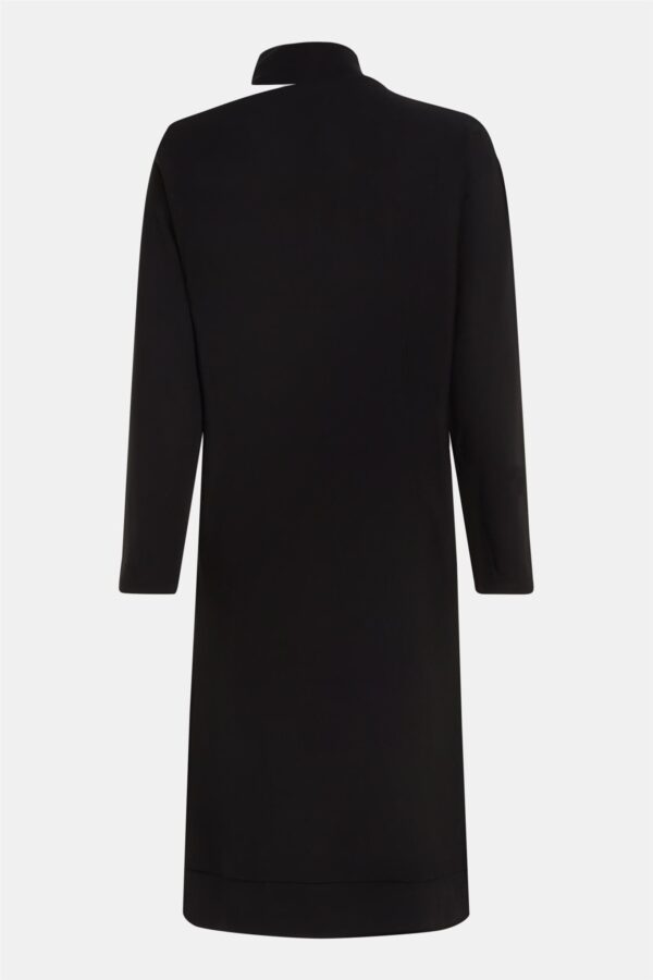 Jurk van Penn & Ink met lange mouw, hoge boord, linker schouder opengewerkt, midi lengte, recht vallend