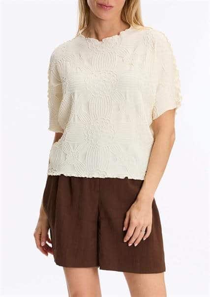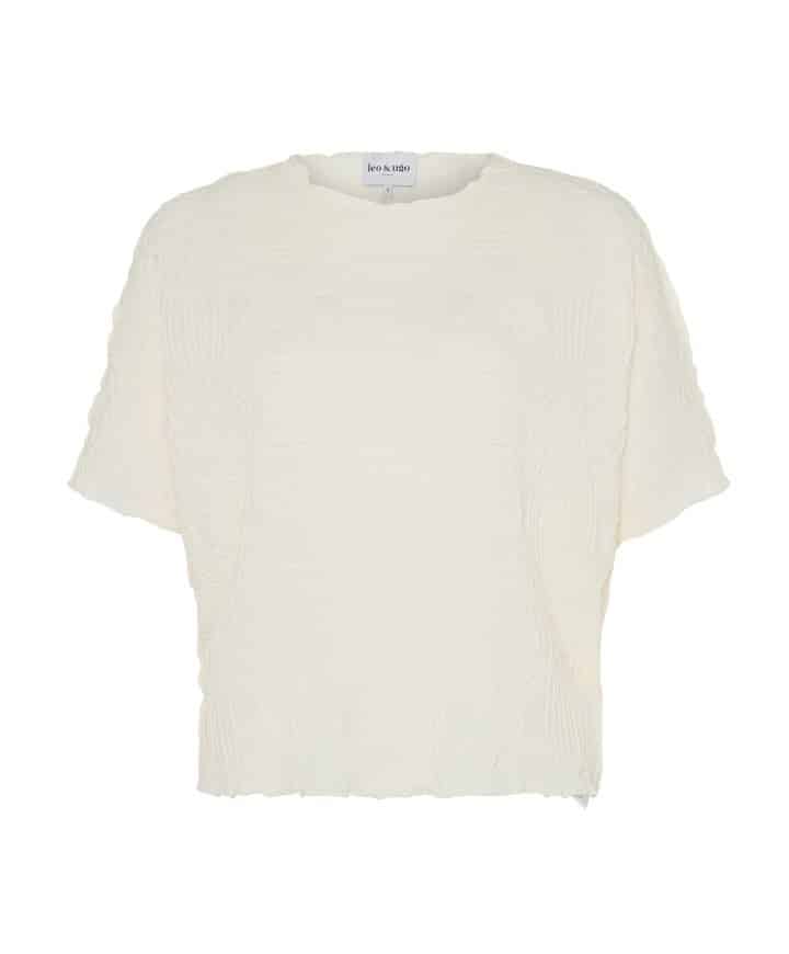 Elastische top van Leo & Ugo met ronde halslijn, cropped model, korte aangeknipte mouwen, gestikt bloemmotief.