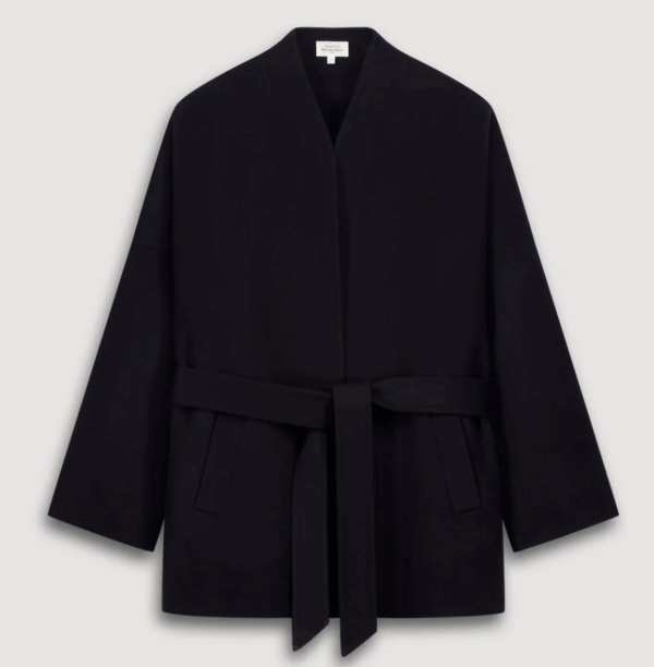 Oversized korte mantel van Hartford met opstaande boord, sluiting met ceintuur, gemaakt van dubbelzijdige wol, verlaagde mouwen, losse pasvorm