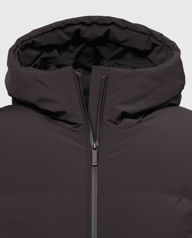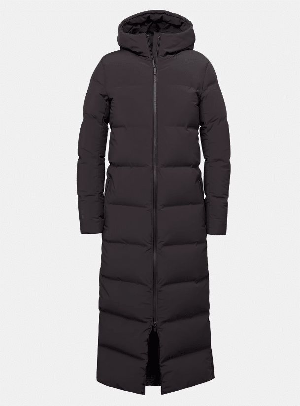 Ultra light extra lange parka van UBR met capuchon en hoge te sluiten split in de zijnaad