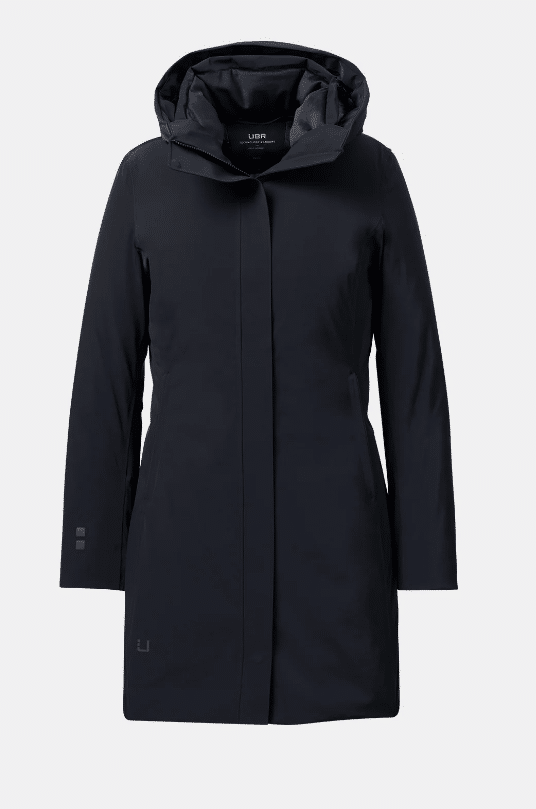 Luxueuze donsparka van UBR. Ultra light, met capuchon, midi-lengte, 2 binnenzakken, minder getailleerd